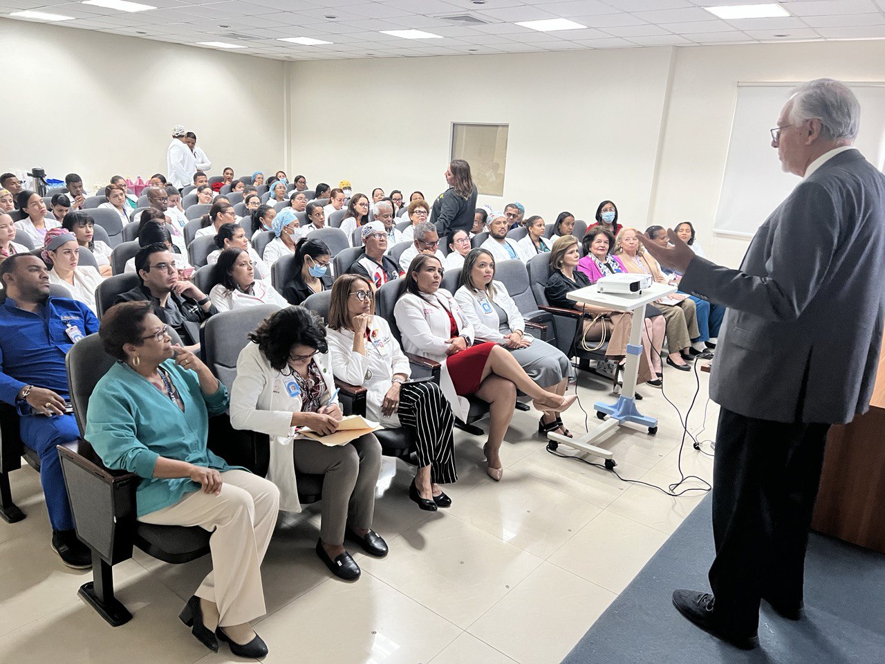 Santo Domingo D.N -El Hospital Universitario Maternidad Nuestra Señora de la Altagracia (HUMNSA) recibió la visita del doctor Eduardo Bancalari, profesor de perinatología de la University of Miami Miller School of Medicine Jackson Memorial Medical Center, en donde impartió una conferencia sobre Soporte Respiratorio en el recién nacido: ¿a quién?, ¿Cuándo? y ¿Cómo? a médicos ayudantes y residentes de perinatología y obstetricia.